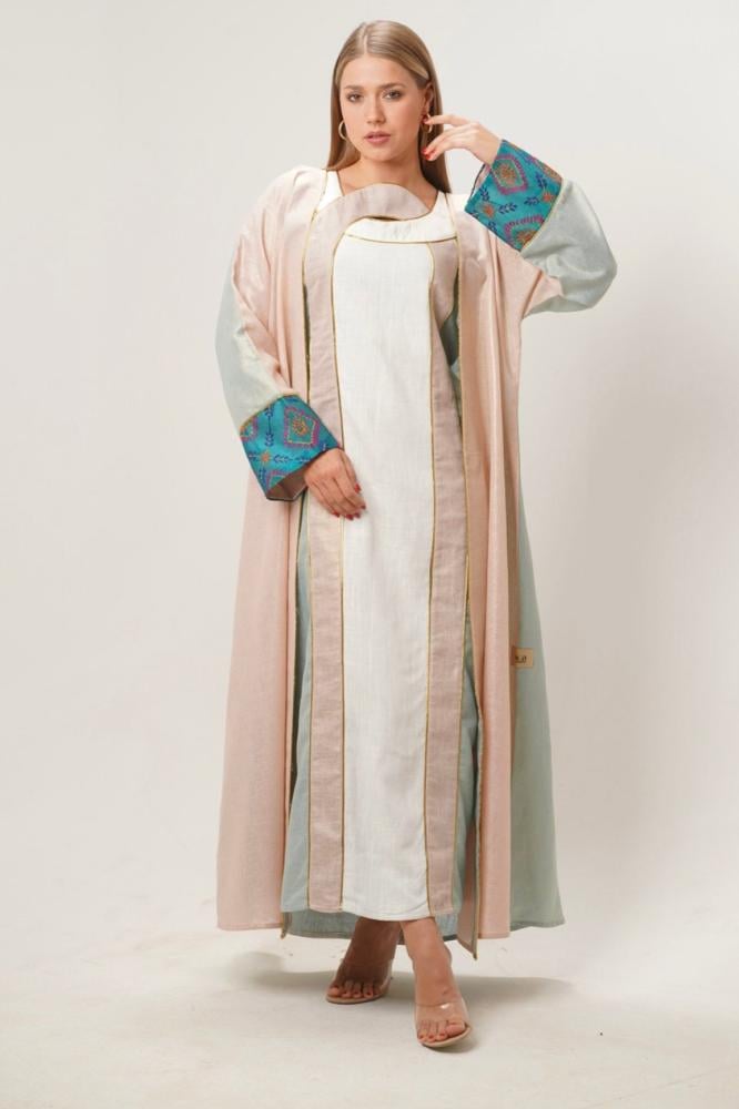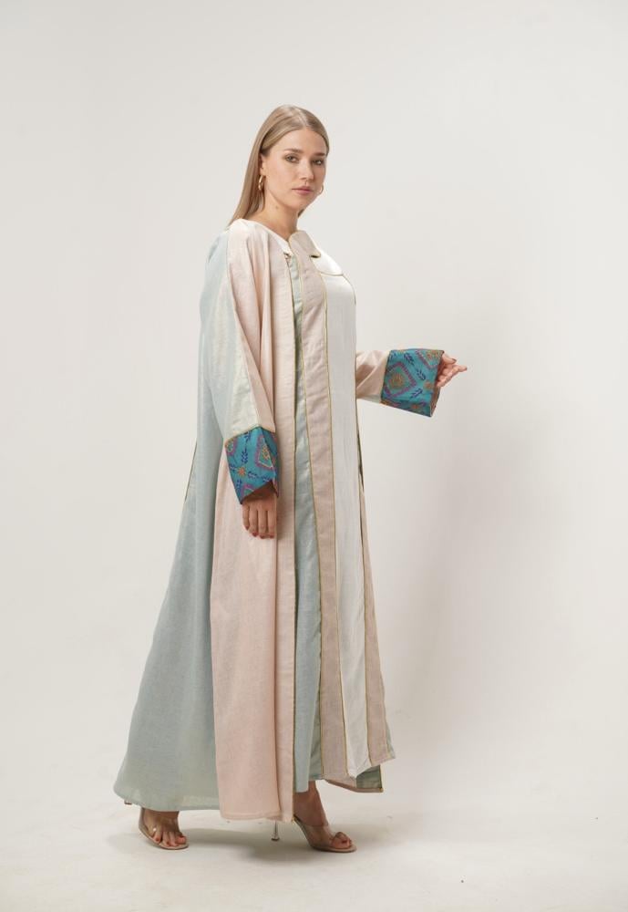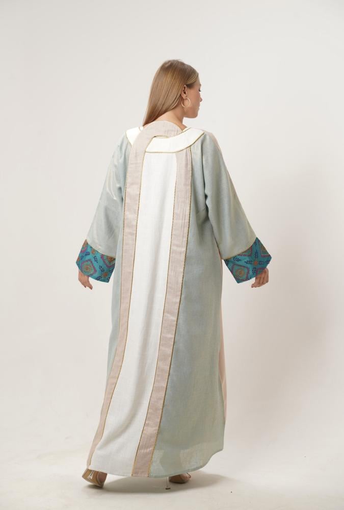 عبايه وفستان بلون سماوي لنن كريستال لون يميزك بمظهر غايه في الفخامه،